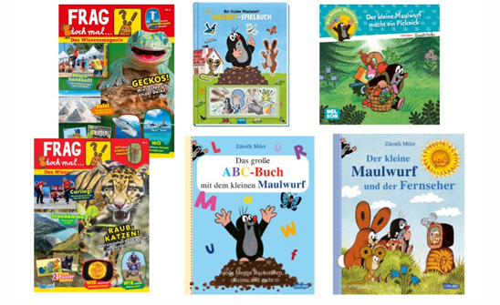 möchte. Das „Der kleine Maulwurf Magnet-Spielbuch“ vom Trötsch Verlag lädt mit zwölf Bildmagneten dazu ein, Szenen zu ergänzen und eigene Geschichten zu gestalten. Ergänzt wird das Angebot durch das neunmal jährlich erscheinende Magazin „FRAG doch mal die Maus“ von Blue Ocean,das neugierige Kinder mit spannenden Fragen und verständlichen Antworten durch den Alltag