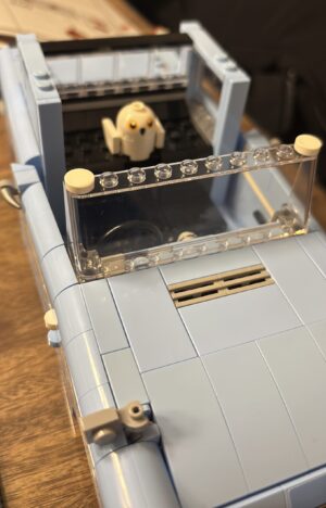 Ebenso enthalten sind 3 Figuren. Hedwig befindet sich im inneren auf dem Rücksitz. Ron und Harry dürfen natürlich vorne im Fahrzeug nicht fehlen. Bei den beiden handelt es sich jedoch nicht um typische Minifiguren. Sie sind größer und haben einzig eine Sitzfunktion und kommen mit witzigen Gesichtern daher.